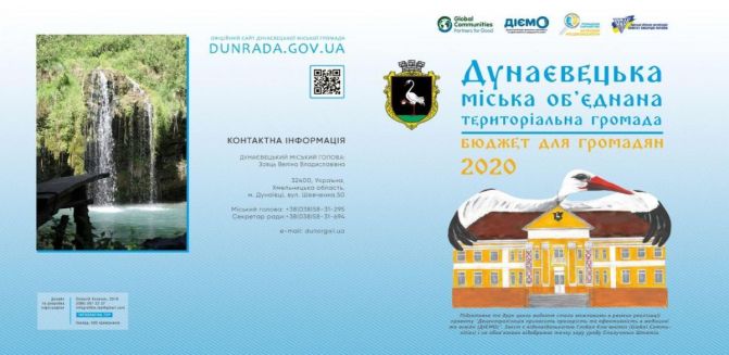 Шановна громадо! Дунаєвецька міська рада з приємністю презентує результат співпраці з проєктом «ДІЄМО», що реалізується міжнародною організацією Глобал Комʼюнітіз (Global Communities) спільно з Громадським Партнерством «За прозорі місцеві бюджети!» та CASE Україна – “Бюджет для громадян 2020”. Другий рік поспіль, п’ятсот примірників буклетів для наших мешканців виготовляється виключно коштом проєкту.