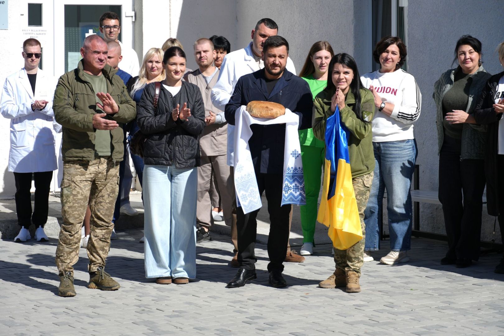 Заступник міського голови Вячеслав Антал привітав нашого Захисника, вручивши йому хліб на вишитому рушнику та синьо-жовтий прапор — символ сили й незламності українського народу. Він побажав Олегу Валерійовичу швидкого відновлення, здоров’я та успішної адаптації.